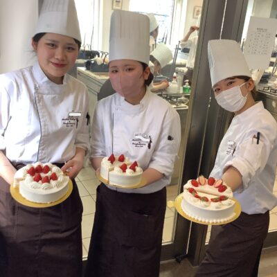 ジェノワーズをまっすぐスライスしたり、サンド用の苺の並べ方も授業で教わりました😊