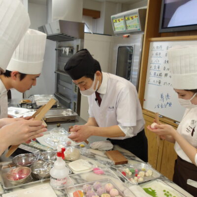 前置きは以上とさせていただき、今回のブログでは先週行われた和菓子実習の様子をお届けします!!